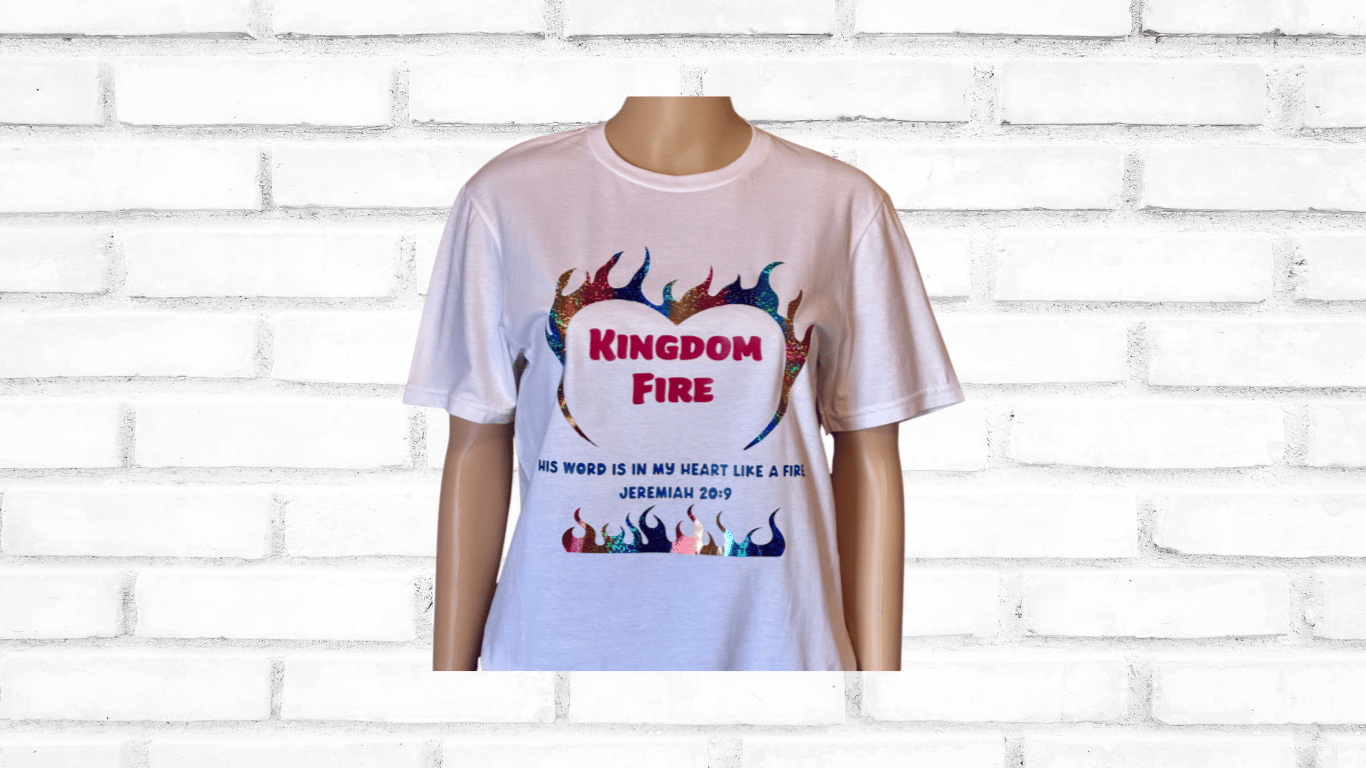 Heavenly Made Apparel Kingdom Fire Adult White Shirt And Adjustable Blue, Red , & White Hat