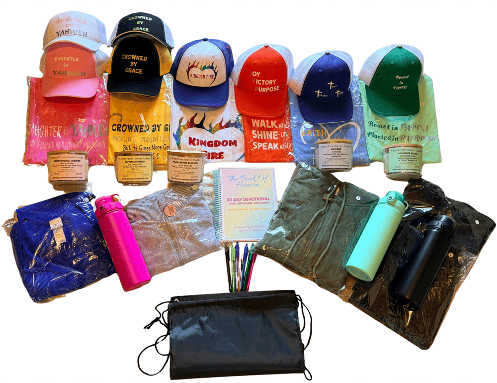Create the perfect✨ gift — or a heavenly treat for yourself — with our exclusive bundle sets. Choose from 2-count or 3-count mix-and-match options featuring candles, devotionals, Heavenly made apparel, and tumblers. Every bundle is thoughtfully crafted to bring faith, style, and inspiration together in one beautiful box.