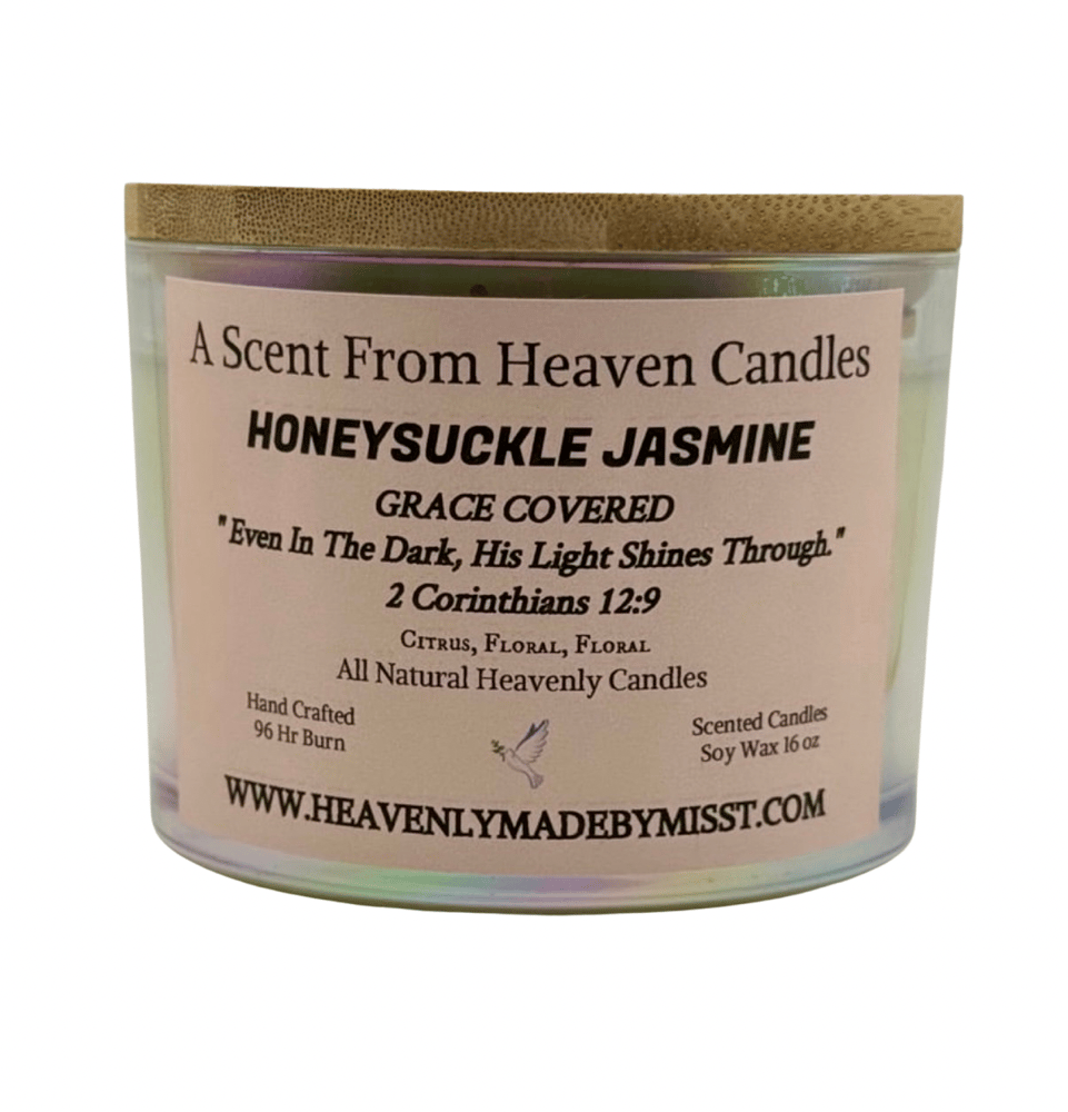 Each candle is hand-poured with soy wax, eco-friendly wicks, and clean fragrance oils for a long, even burn. Inspired by our mission to uplift and encourage, every Honeysuckle Jasmine candle carries a carefully chosen quote or scripture on the label—bringing not just fragrance, but a moment of inspiration into your home.