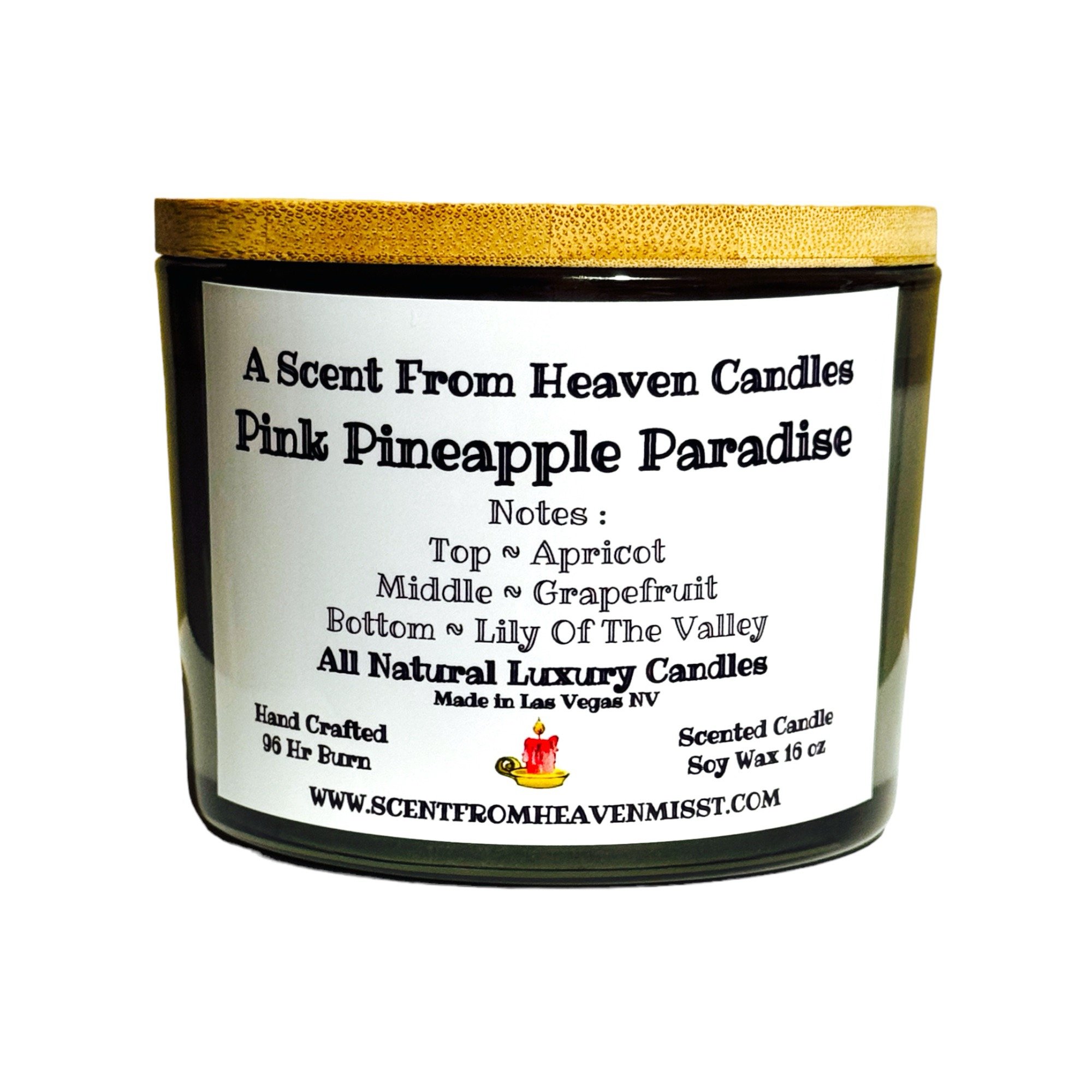 Our Pink Pineapple Paradise candles has pink pineapple, tropical citrus, and strawberry guava that creates a bright, exciting blend that captures the essence of sunrise on the beach. Giving beach vibes every time.